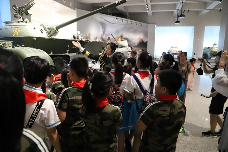 在解说员的带领下,学生们首先参观了兵器陈列,了解了战斗英雄王海驾驶过的米格15歼击机、功臣号坦克、“红旗二号”导弹等人民军队历史上的功勋武器,以及背后一个个动人的故事,每个人的心灵都被深深地感染和震撼着。